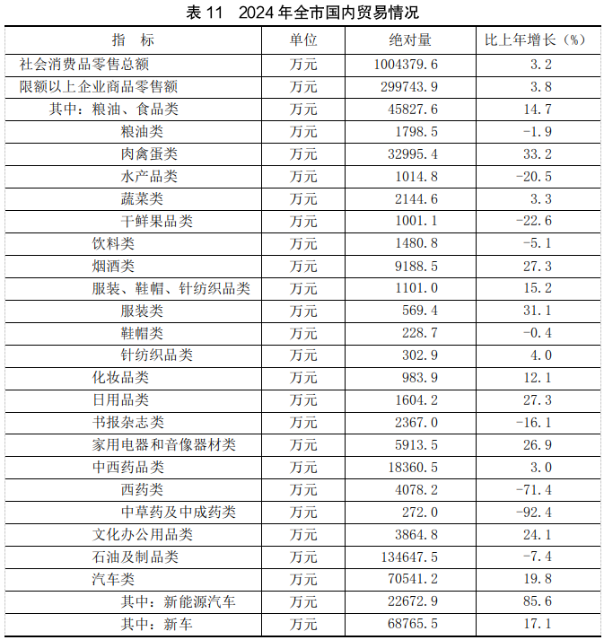 全年全市社会消费品零售总额比上年增长3.2%。