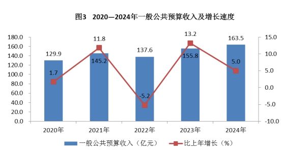 财政收支:全年完成一般公共预算收入163.5亿元,比上年增长5%。其中,增值税46.7亿元,增长7%;房产税25.1亿元,增长7.1%;企业所得税20亿元,增长3.9%;城市维护建设税8.9亿元,增长4.9%。全区一般公共预算支出299.2亿元,比上年增长3.5%。其中,社会保障和就业支出增长6.2%,教育支出增长0.6%,城乡社区支出增长13.7%,节能环保支出增长11.4%。