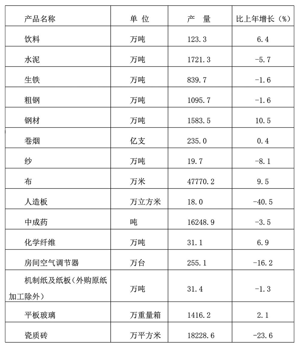 全市规模以上工业中,装备制造业增加值增长33.1%,钢铁工业增长14.9%,医药工业增长0.5%,食品工业增长9.0%,建材工业下降8.0%,纺织服装业下降0.8%,石化工业增长5.7%。