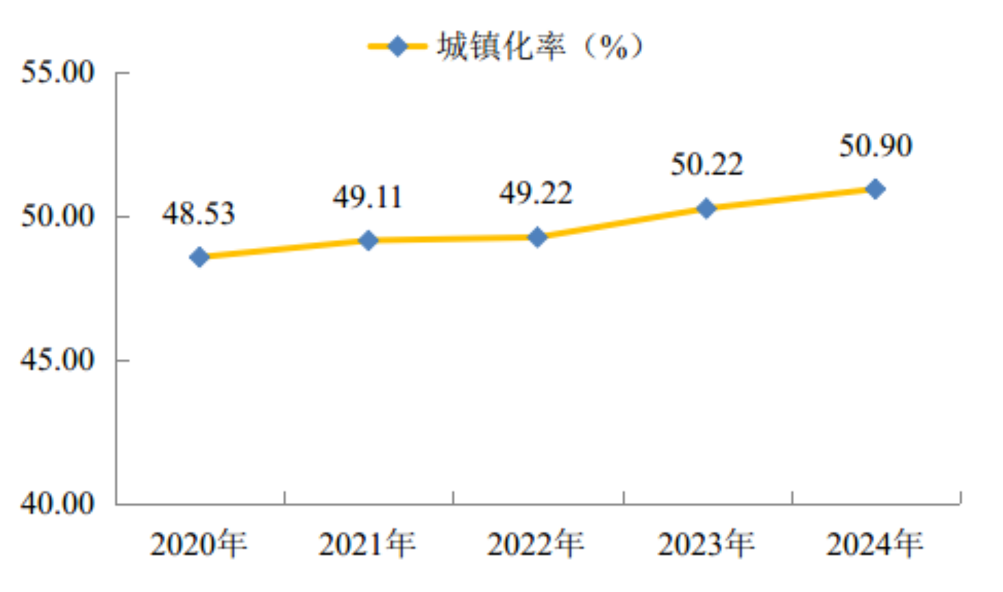 图3 2020—2024年年末来宾市常住人口城镇化率