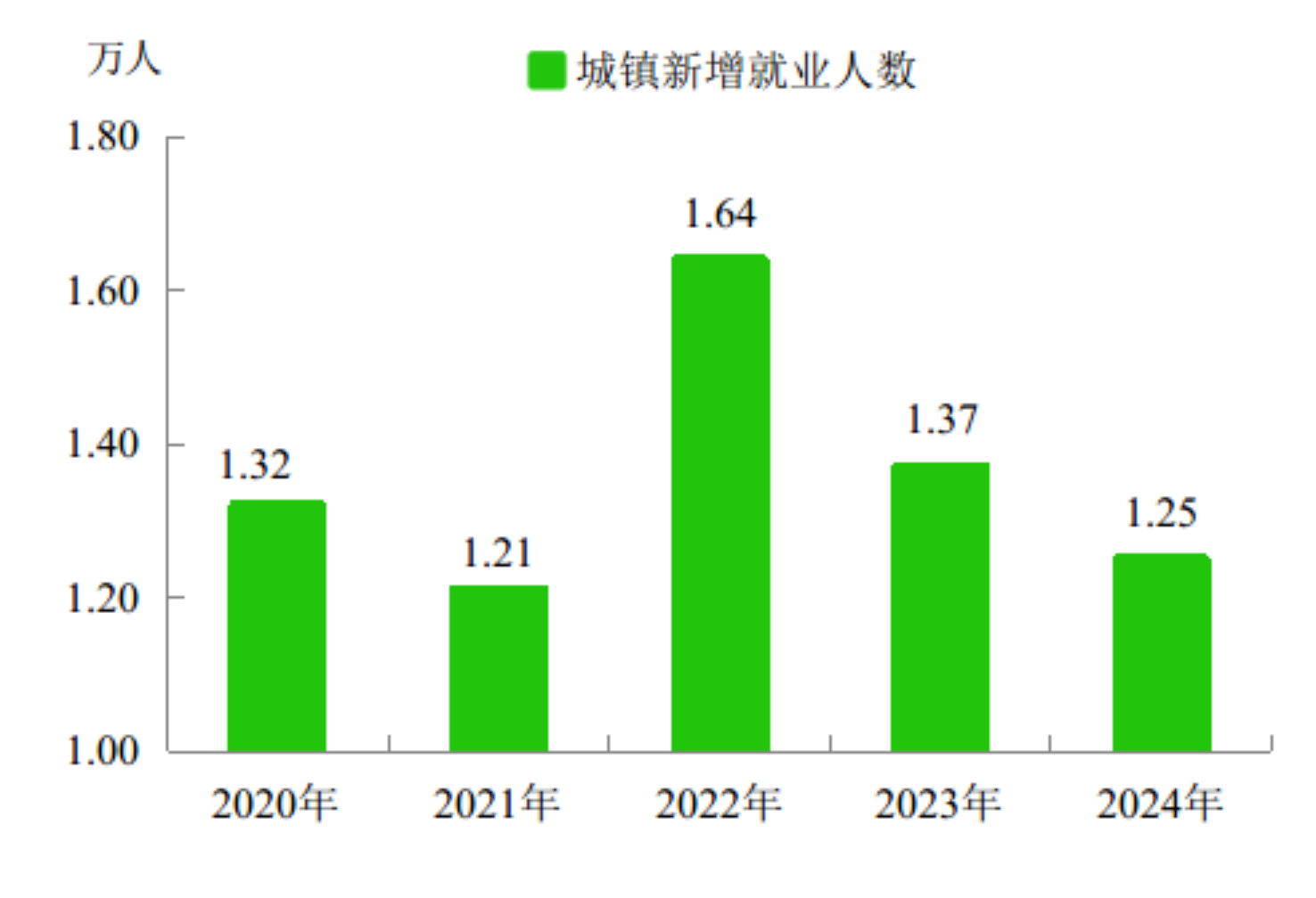 全年实现城镇新增就业1.25万人,比上年减少0.12万人,失业人员再就业人数0.36万人,就业困难人员实现就业人数0.17万人,农村劳动力转移就业新增6.22万人次。