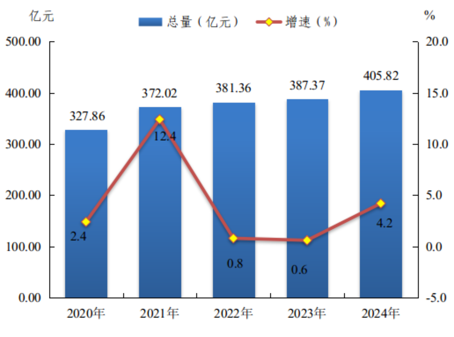 图1 2020—2024年来宾市生产总值及其增长速度