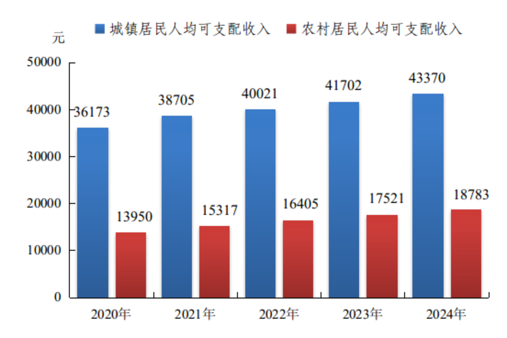 全年居民人均可支配收入29924元,比上年增长5.2%。按常住地分,城镇居民人均可支配收入43370元,增长4.0%;农村居民人均可支配收入18783元,增长7.2%。