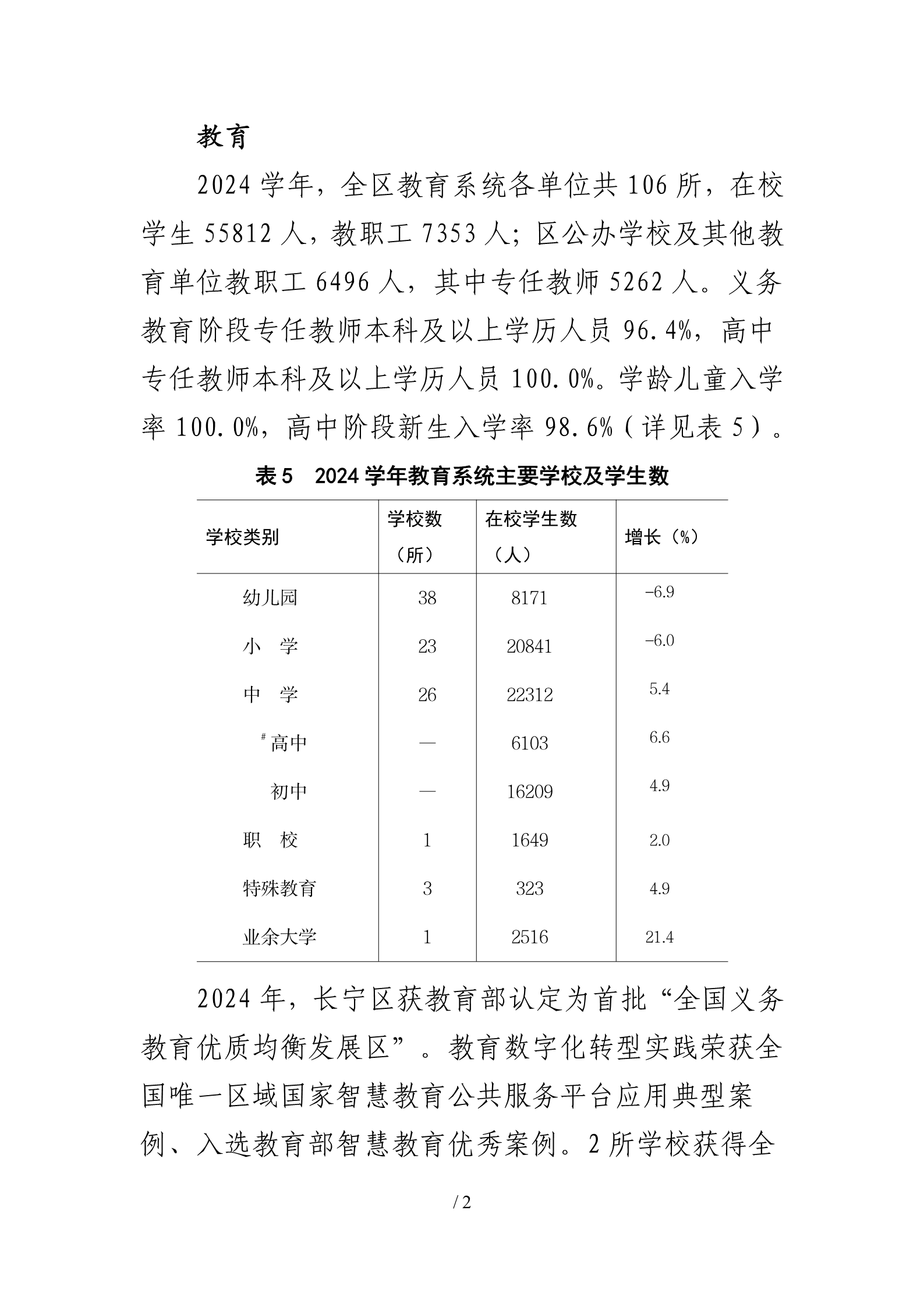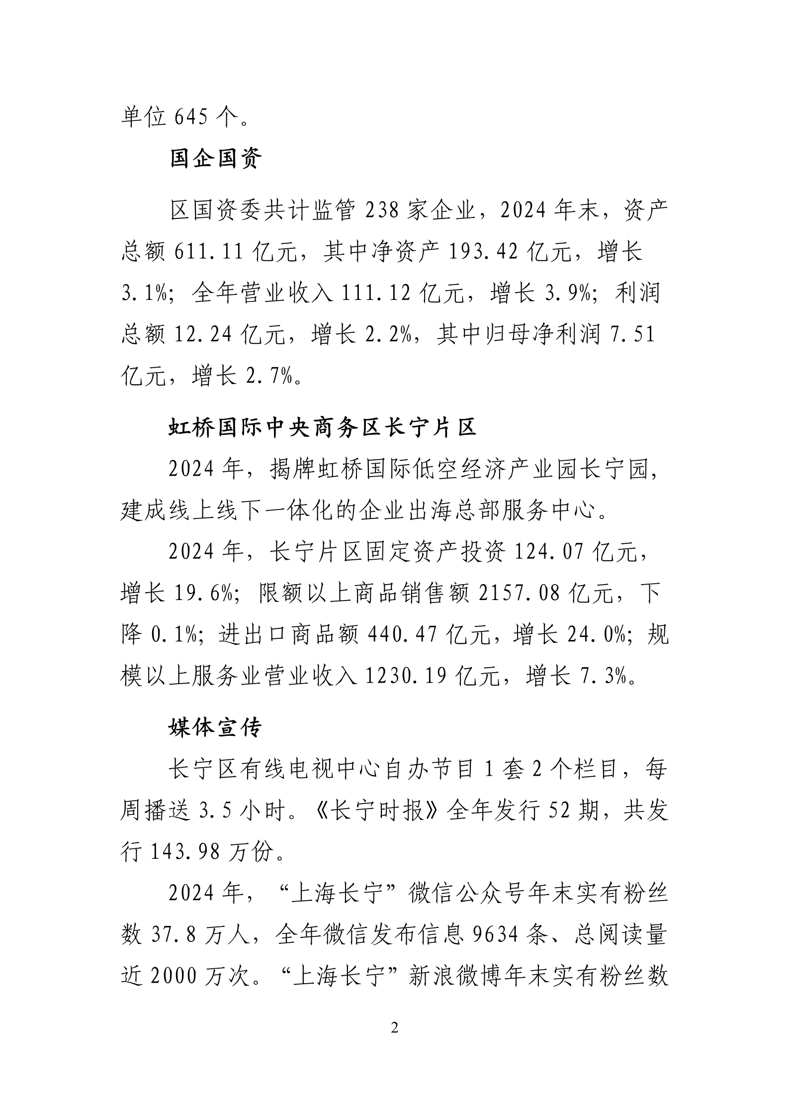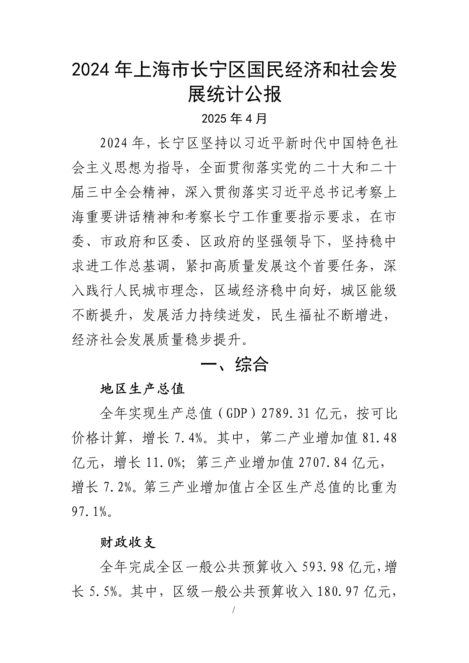2024年上海市长宁区国民经济和社会发展统计公报