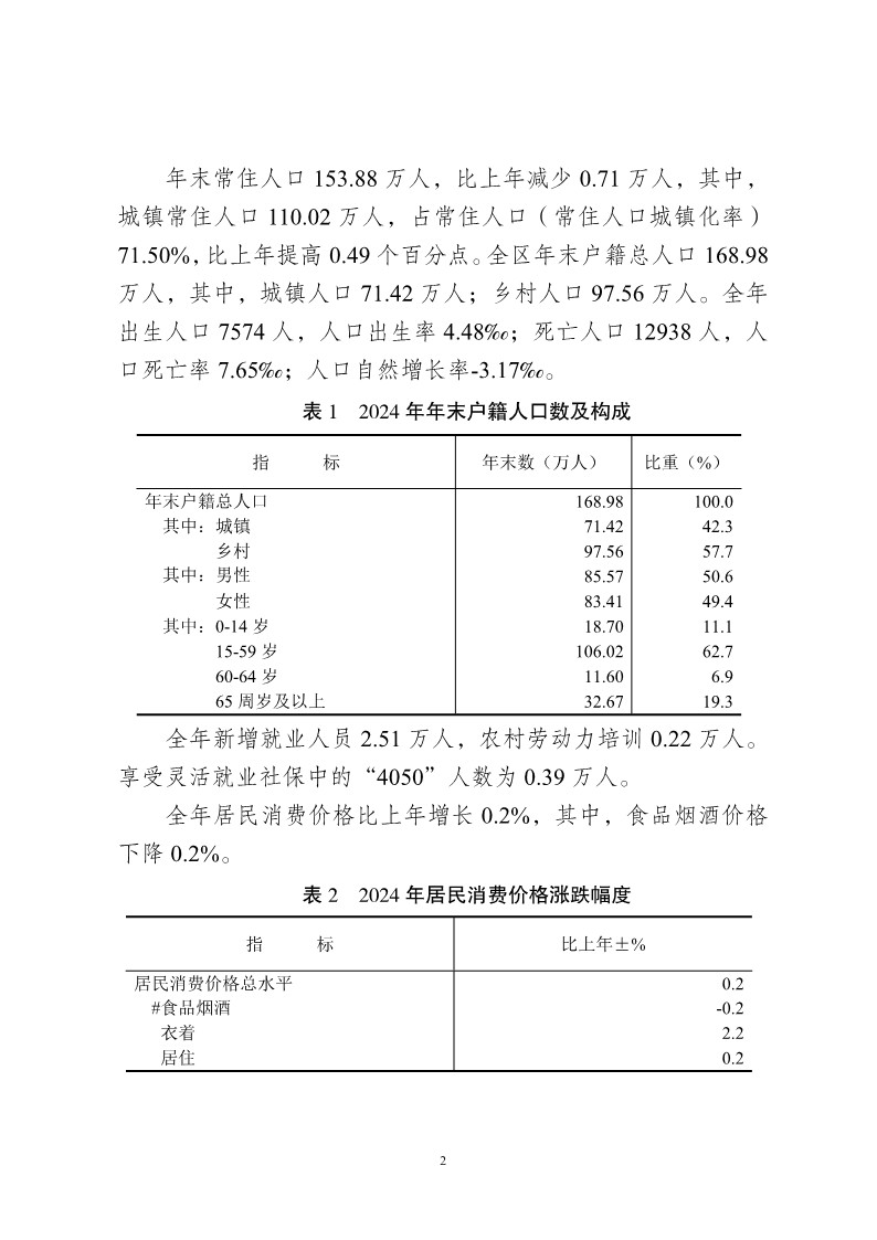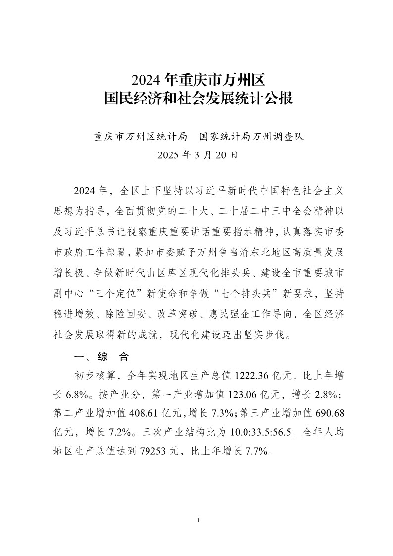 2024 年重庆市万州区国民经济和社会发展统计公报