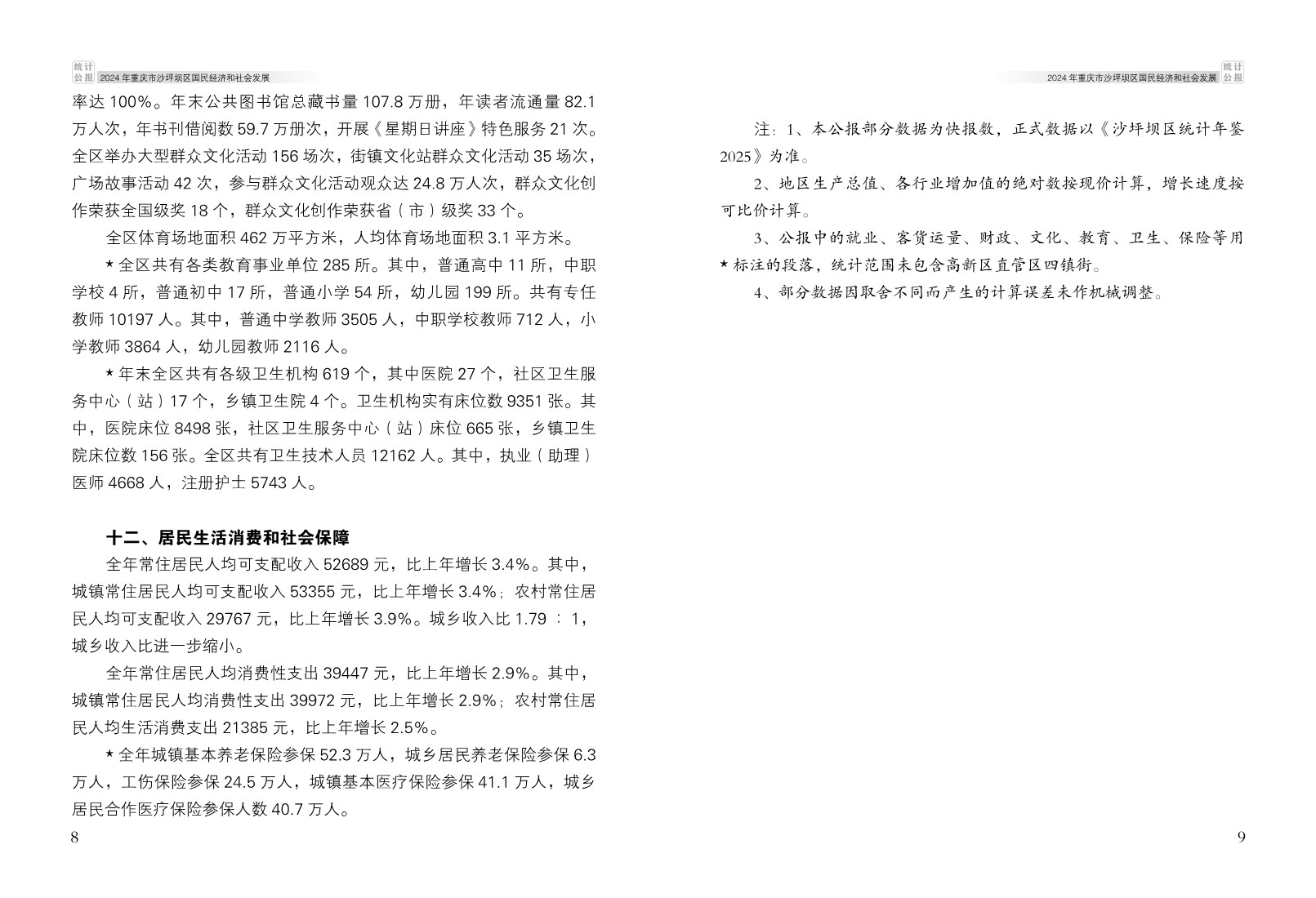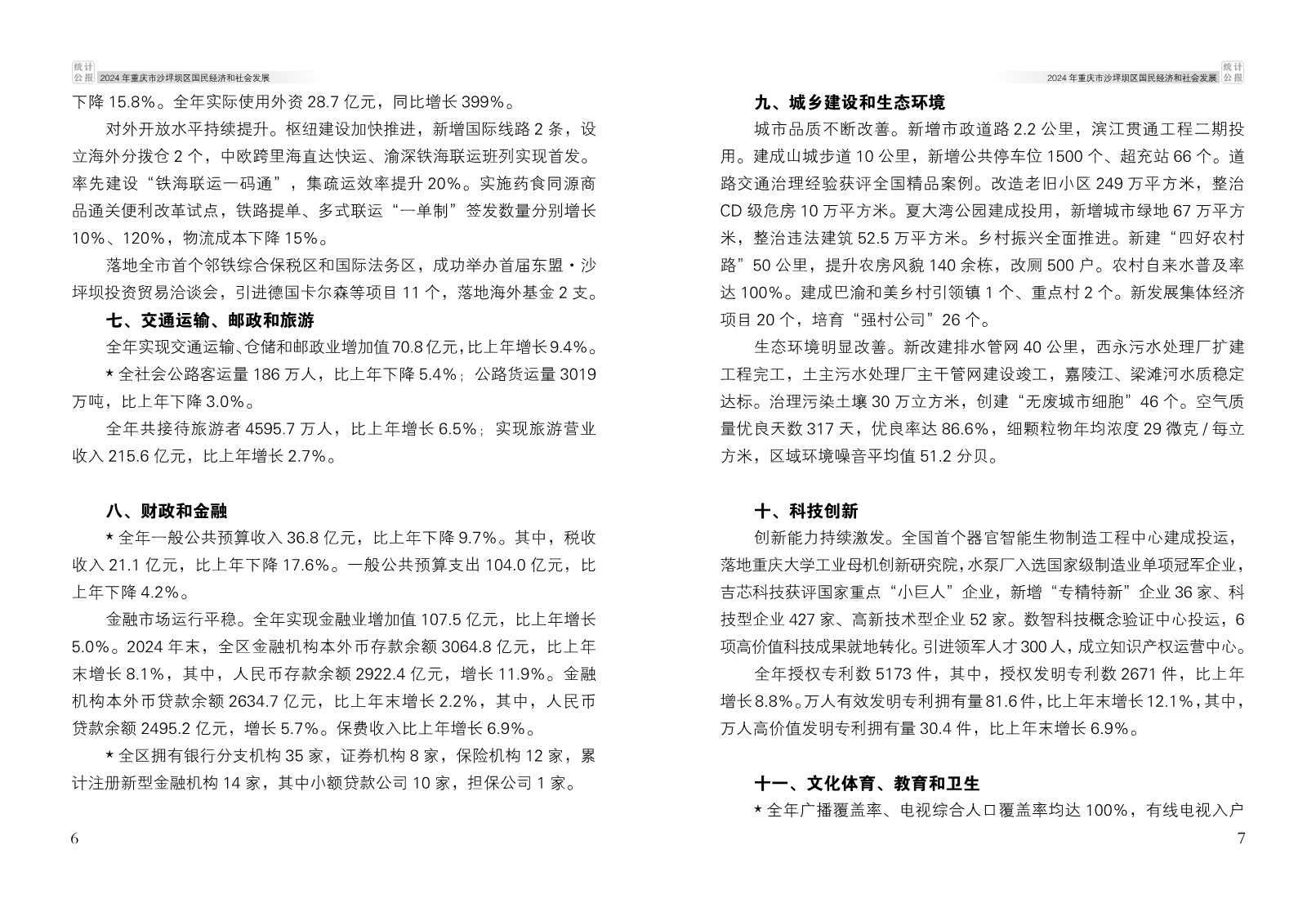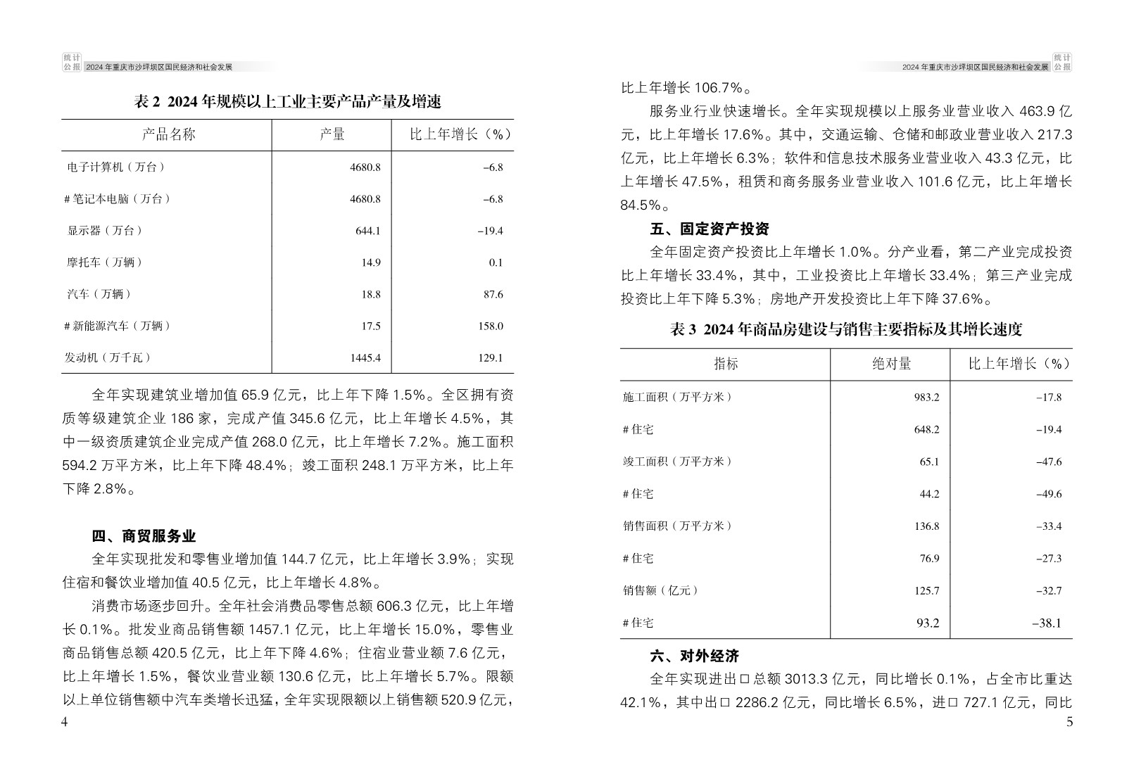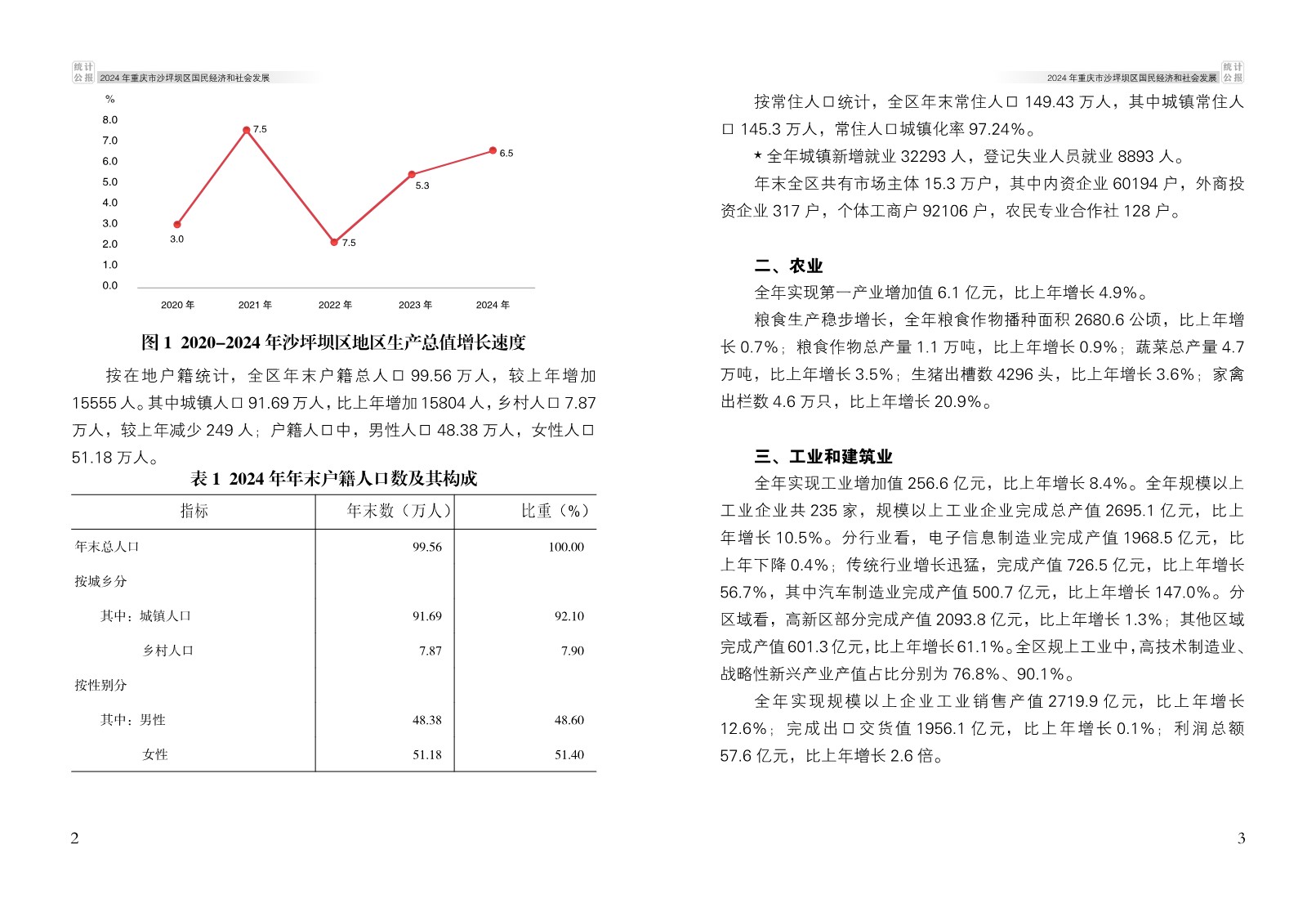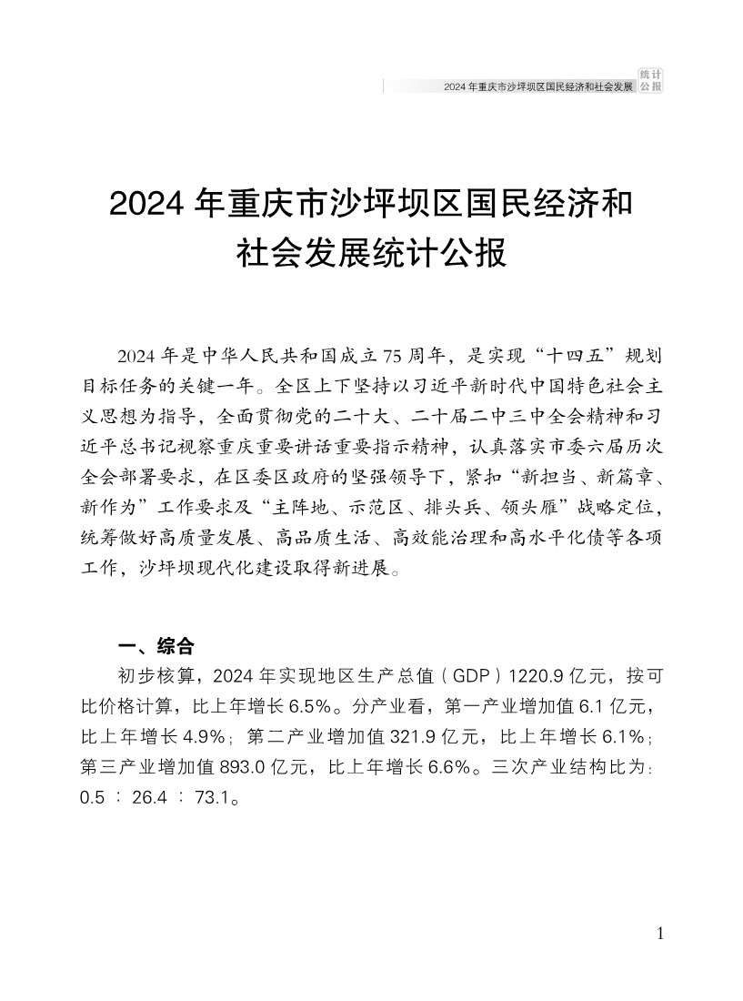 2024 年重庆市沙坪坝区国民经济和 社会发展统计公报