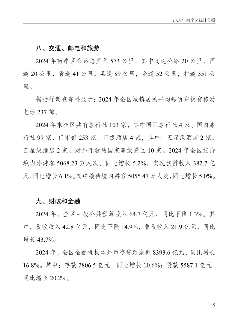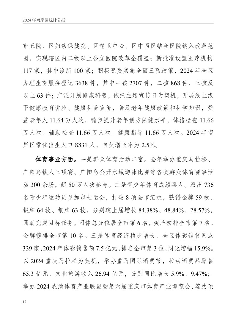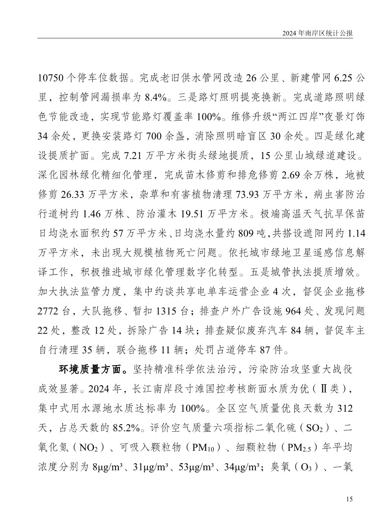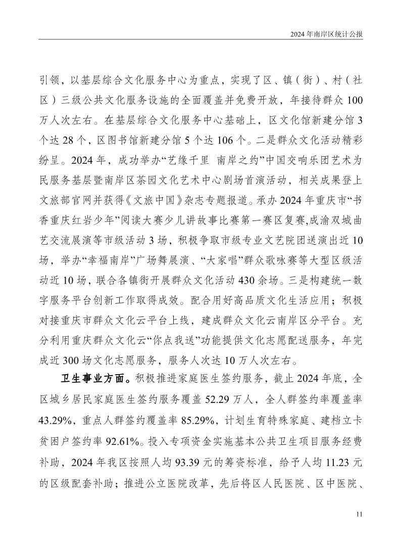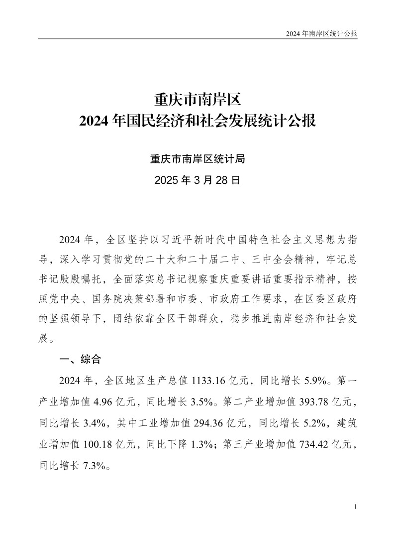 重庆市南岸区2024 年国民经济和社会发展统计公报
