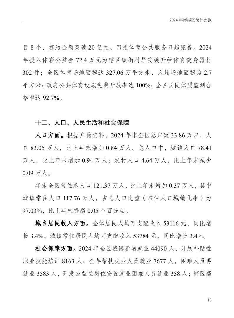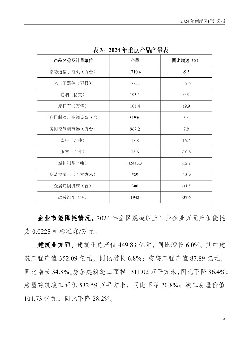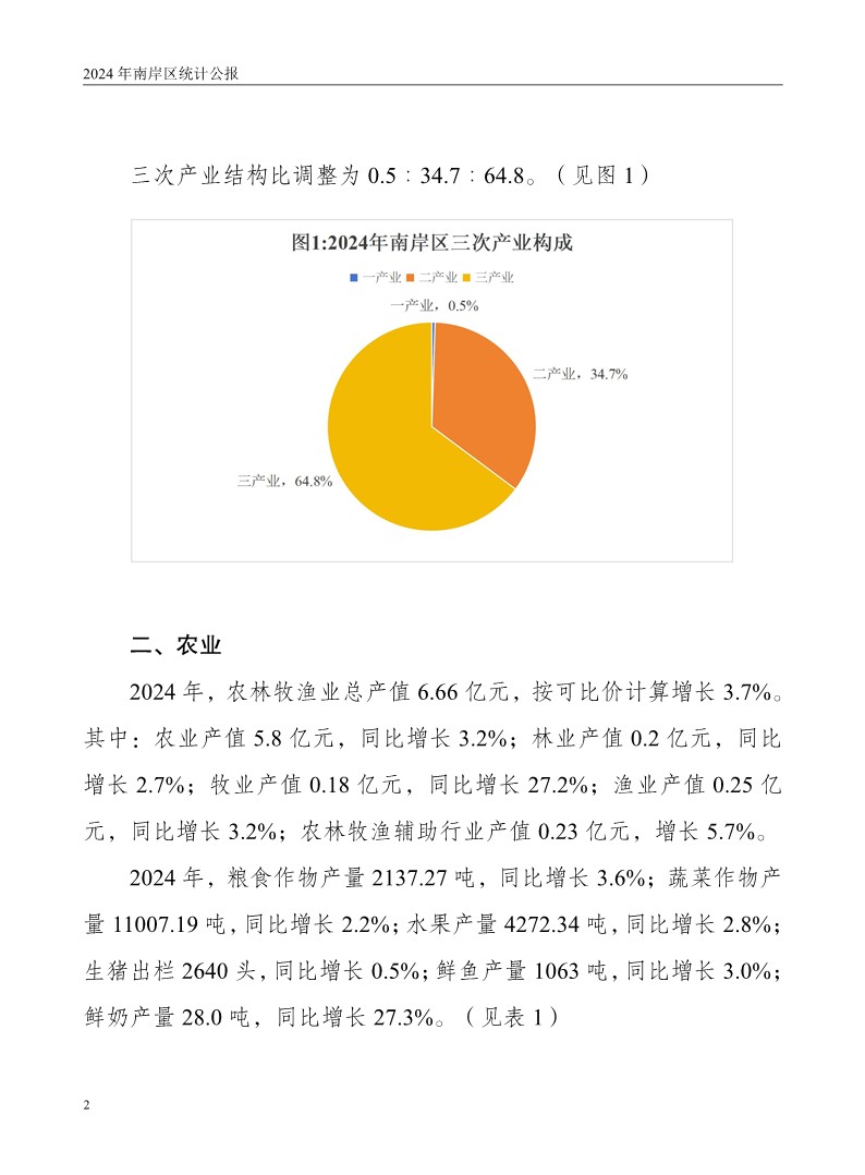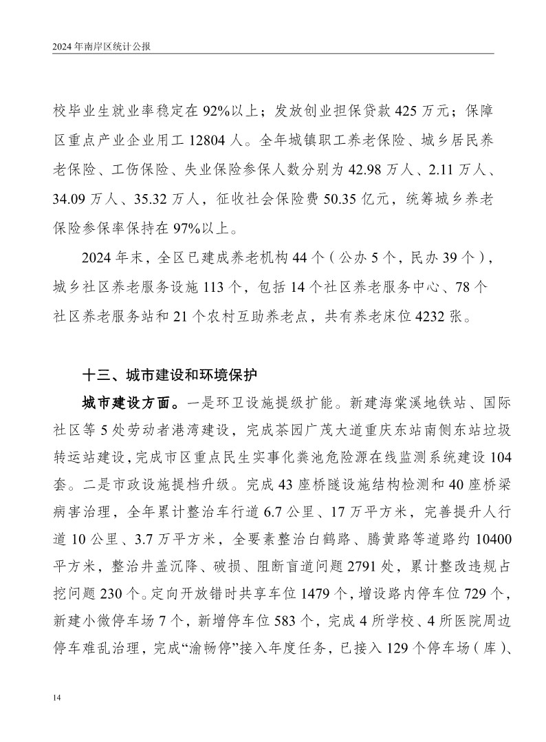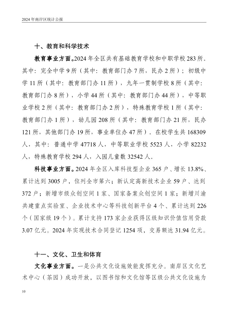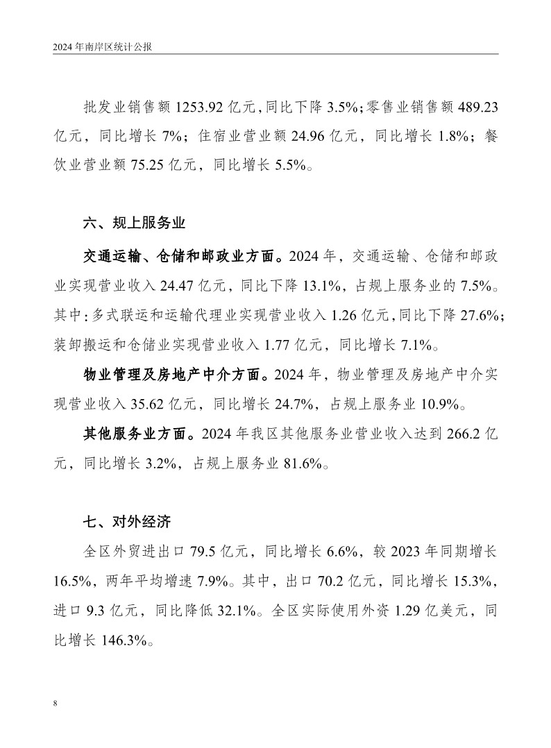 重庆市南岸区2024 年国民经济和社会发展统计公报