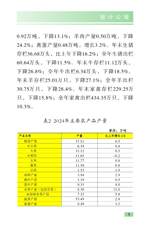 酉阳土家族苗族自治县2024年国民经济和社会发展统计公报