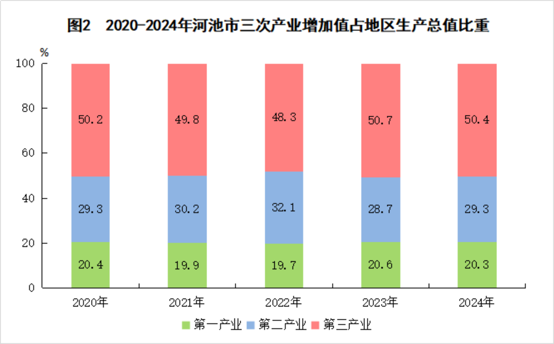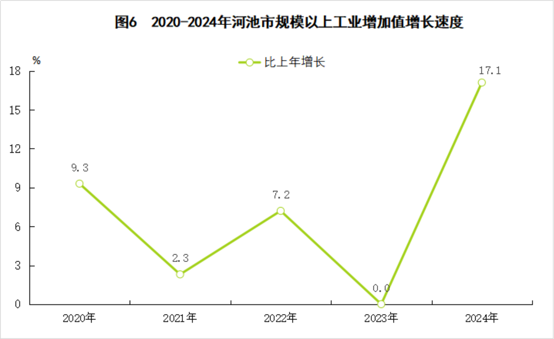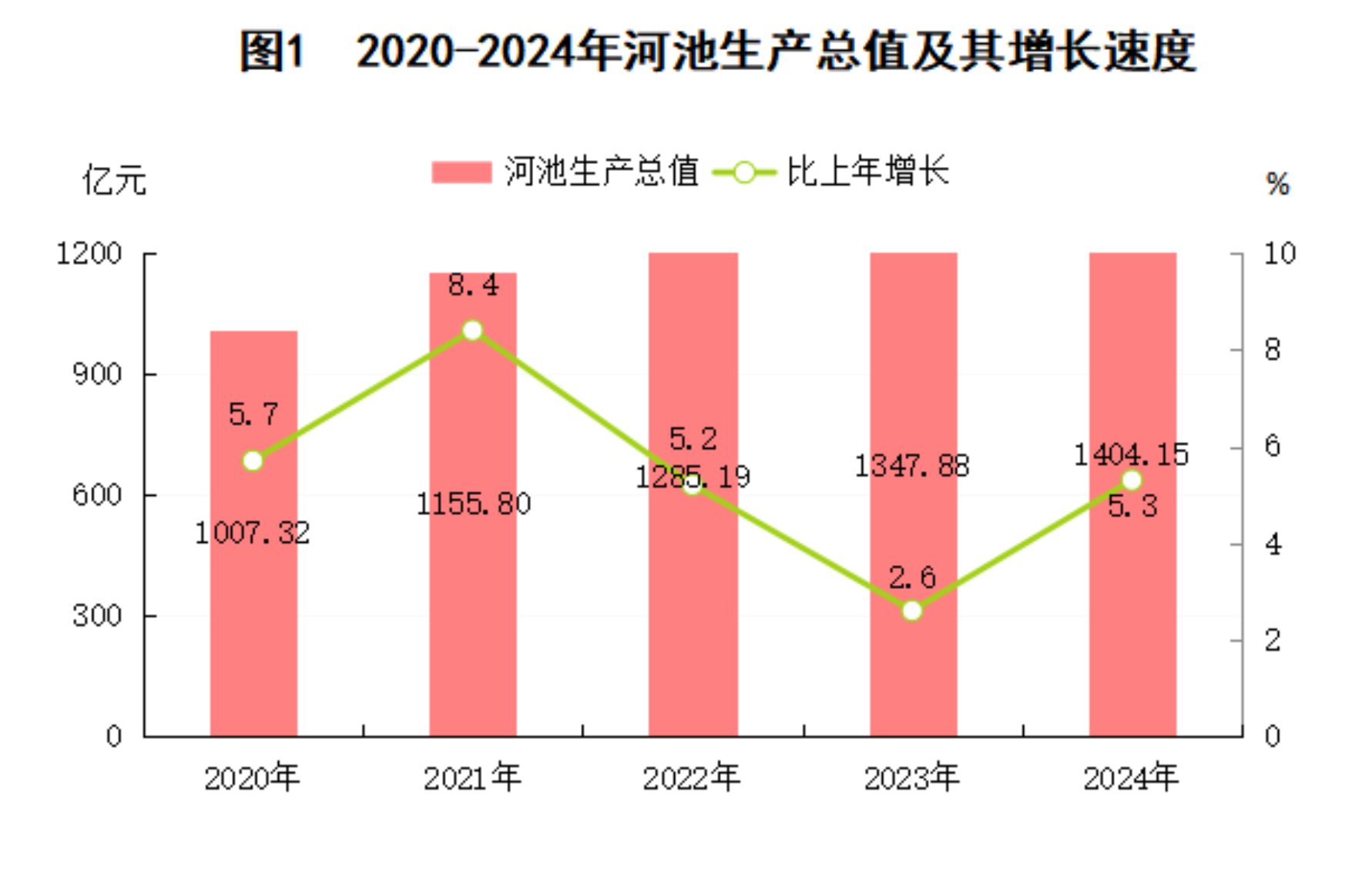 [1]本公报中2024年数据均为初步统计数,最终数据以《河池统计年鉴(2025)》为准。部分数据因四舍五入的原因,存在总计与分项合计不等的情况。