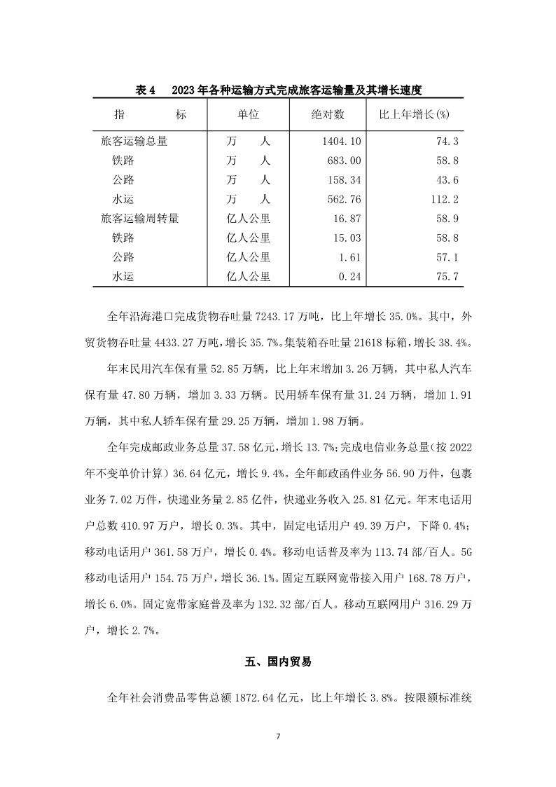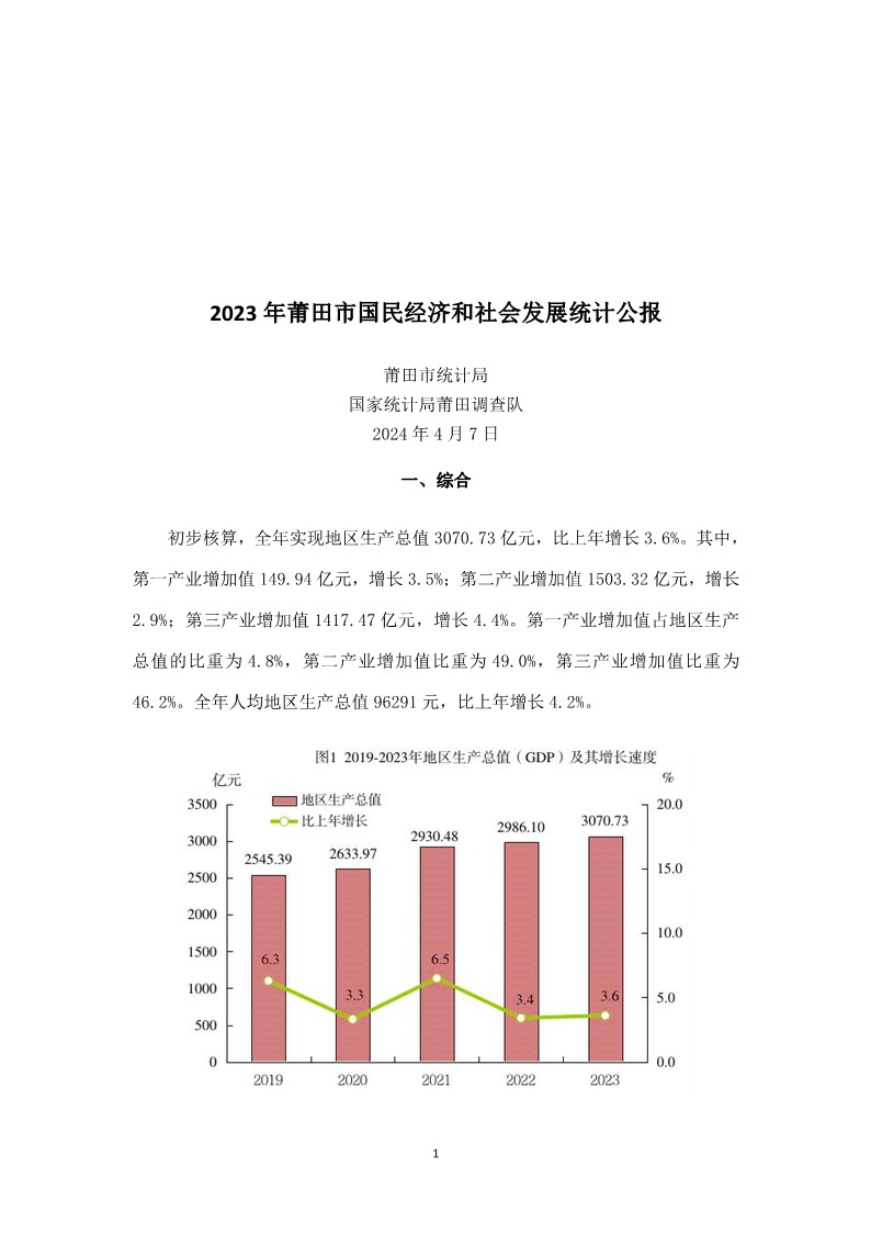 2023年莆田市国民经济和社会发展统计公报