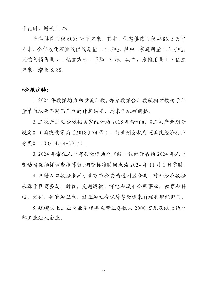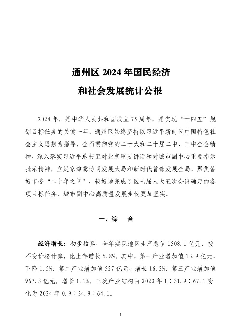 通州区2024年国民经济和社会发展统计公报