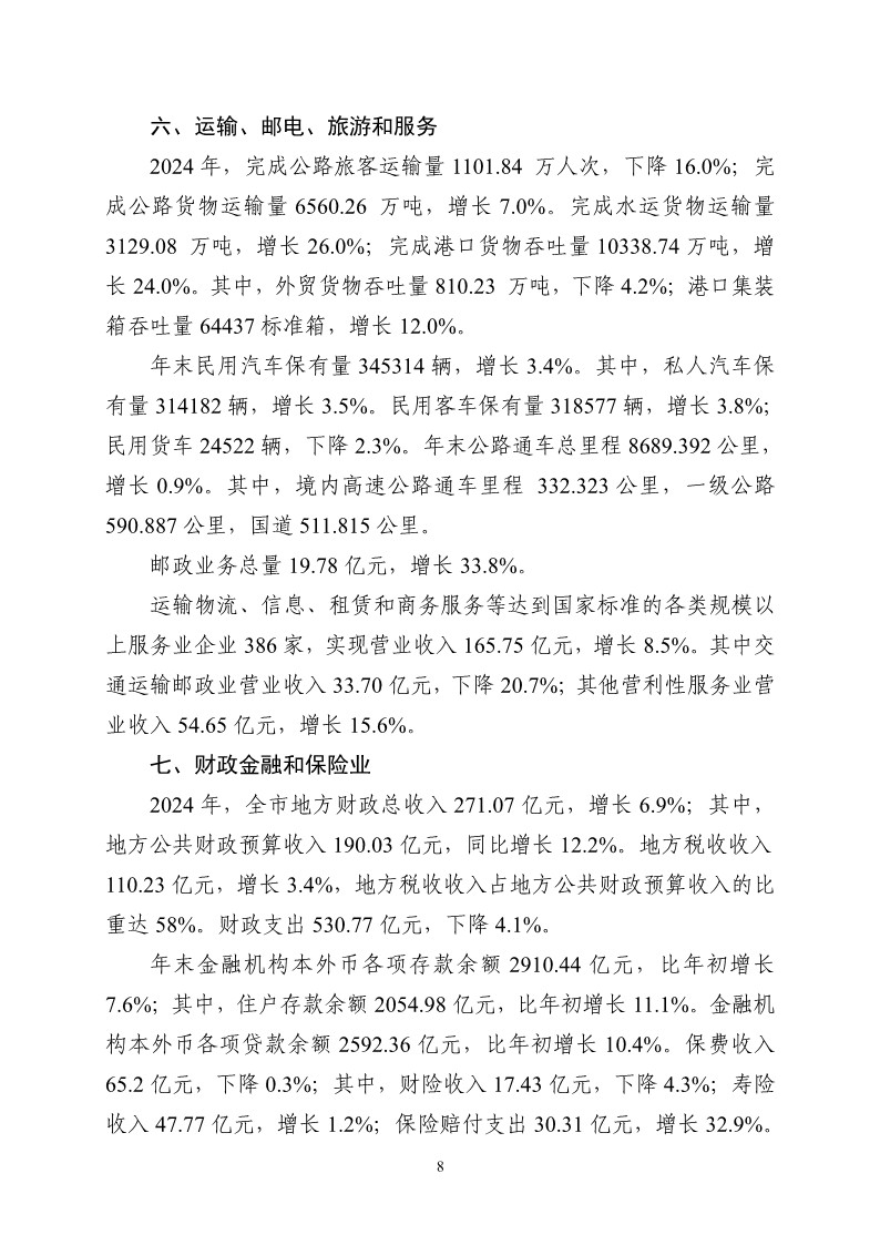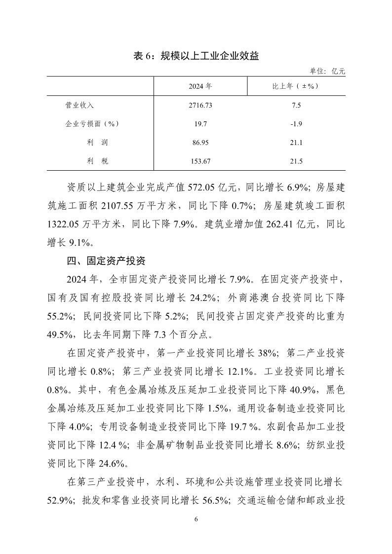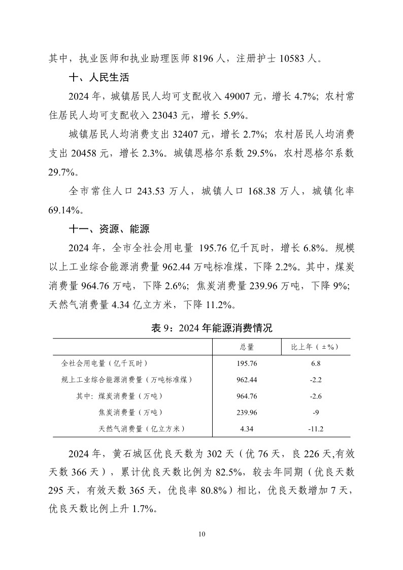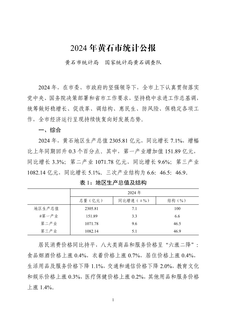 2024年黄石市国民经济和社会发展统计公报