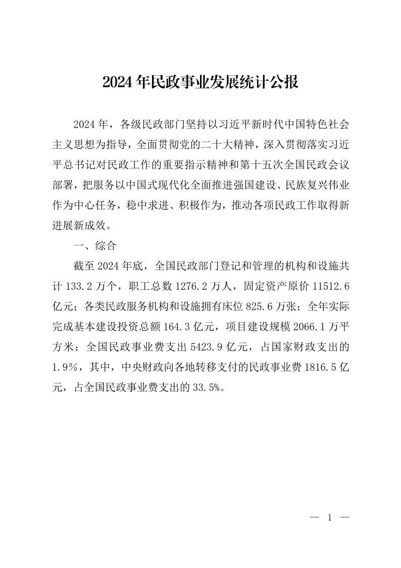- 2024年中国民政统计年鉴 >> a-1-3民政事业发展主要数据与上年比较